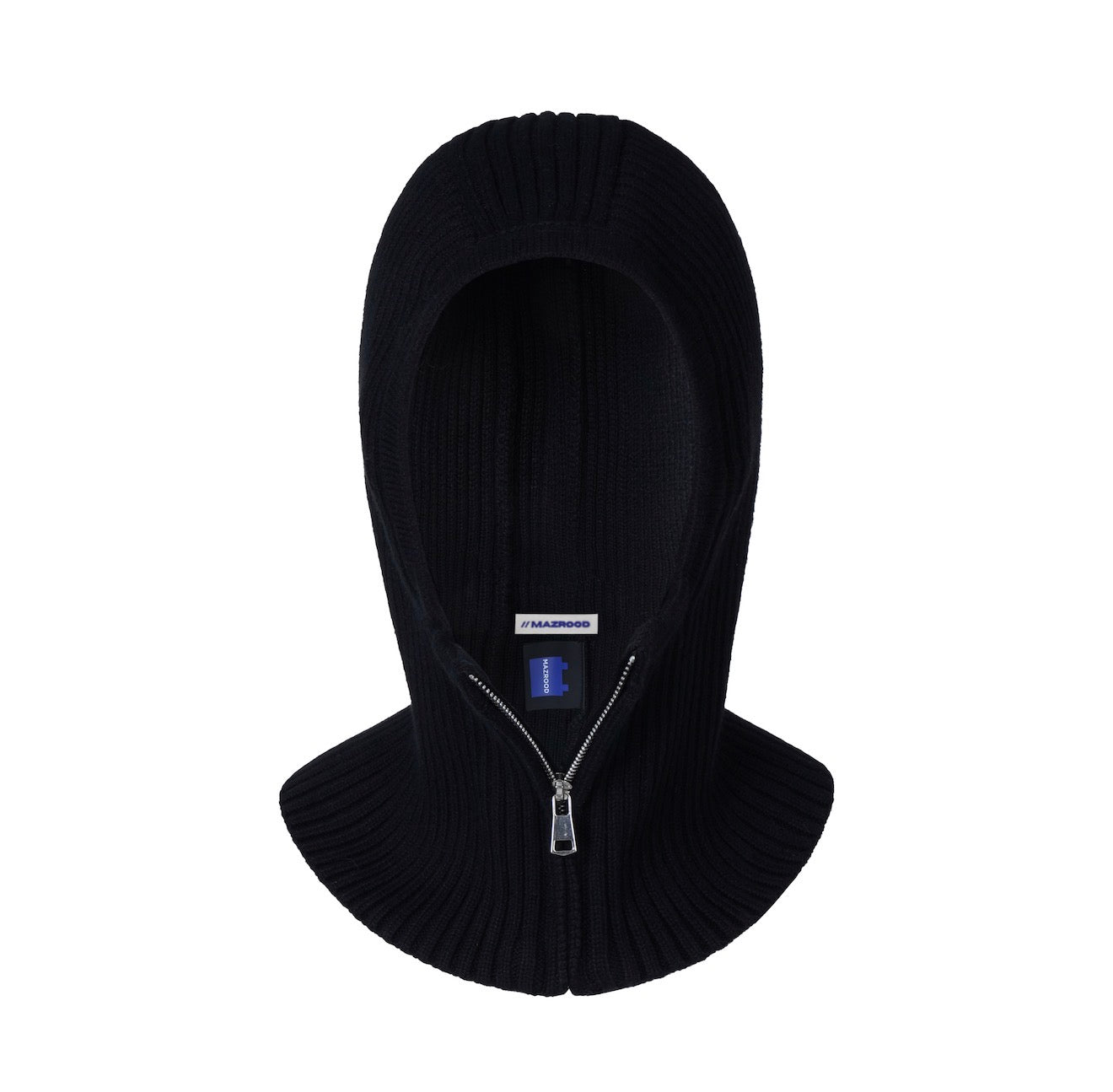 The Veil Zip Hood blurs the line between accessory and statement. Designed as a detachable knit hood, it layers effortlessly over shirts, coats, or sweaters — transforming the silhouette with an architectural edge. Made from a cotton–nylon–wool blend, it offers warmth, structure, and texture in one bold piece.